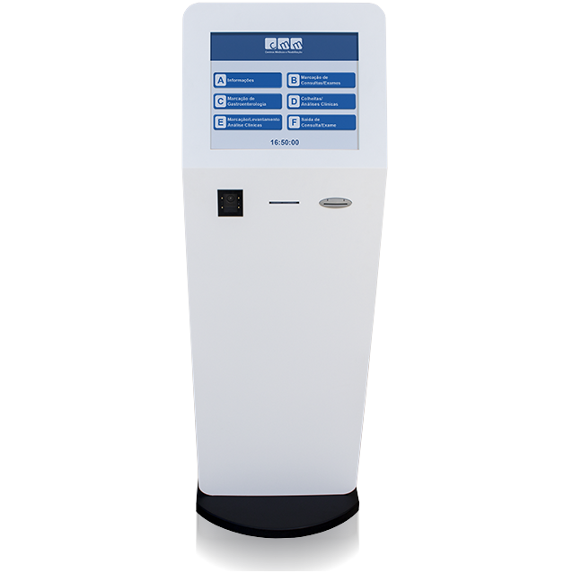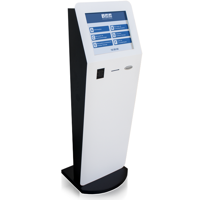 Ticket dispenser with 17” high resolution and anti-vandalism touch screen for indoor use, made of composite aluminum sheet (available in several colors), with a 4 mm sheet, which guarantees the stability of the whole set.